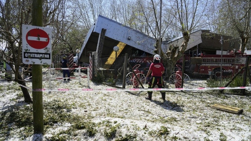 Algo parecido pasó en el cuartel de bomberos voluntarios de la localidad. El techo del galpón donde se ubican los camiones, se desplomó por completo. Afortunadamente, no se registraron personas heridas.