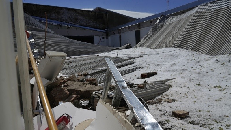 El club de Funes se llevó una de las peores partes del temporal. Los dos techos más importantes de la institución colapsaron por el peso de las piedras y los espacios donde los chicos y chicas entrenaban quedaron completamente destruidos.