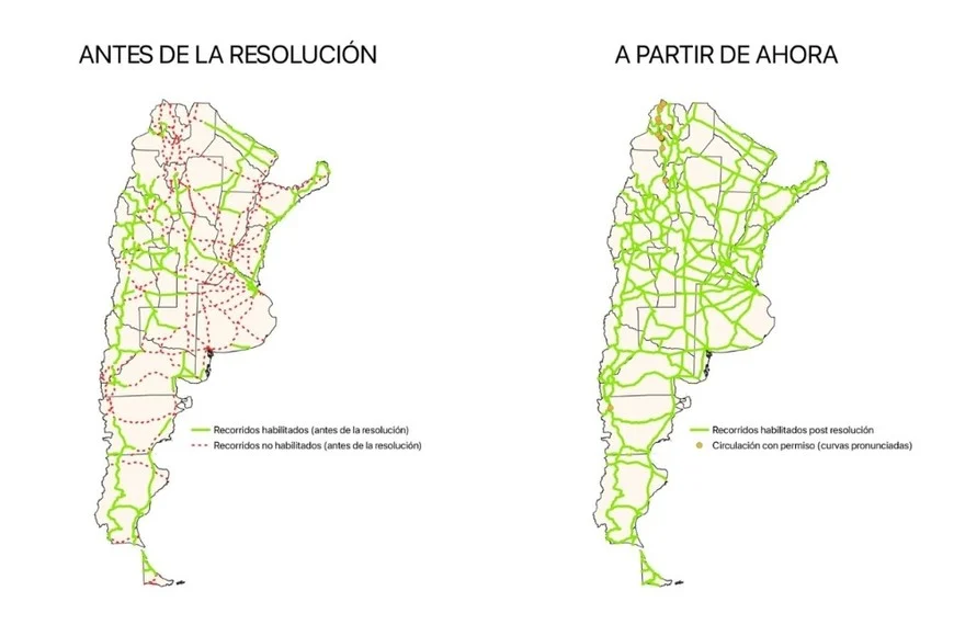 Podían circular por sectores muy específicos y ahora lo podrán hacer por casi todas las rutas argentinas. En las rutas provinciales está autorizada su circulación mediante la Resolución 360/25.