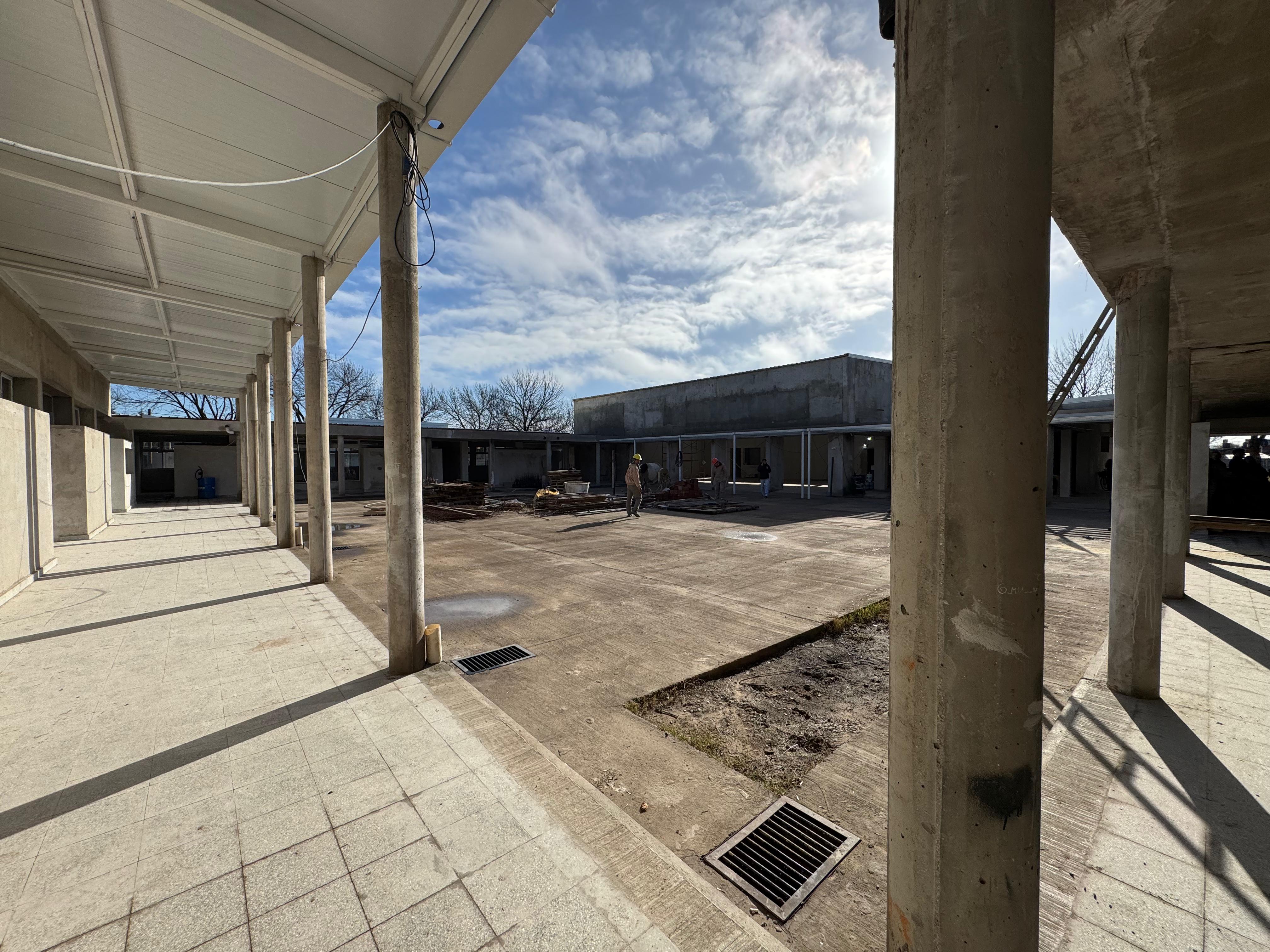 Actualmente se está avanzando con la terminación de desagües pluviales, la instalación de sanitarios, bebederos, muebles y mesadas. Además, se colocarán luminarias, rejas, mástil y baranda en la rampa de ingreso, y se continuará con los trabajos de pintura, pulido de pisos y parquización. También está prevista la provisión de equipamiento como termotanques, cocina industrial, pizarrones, percheros y frisos.