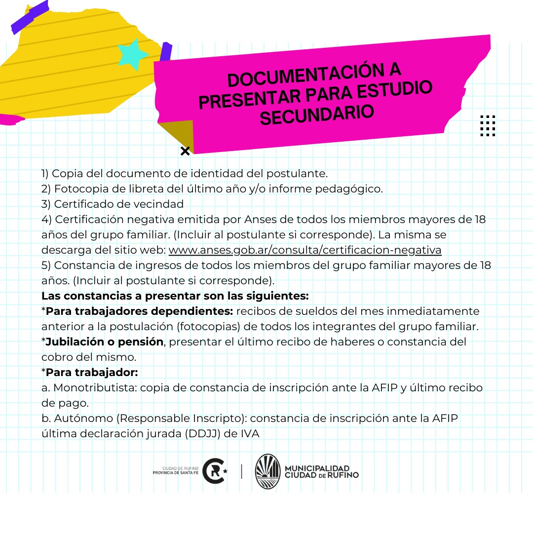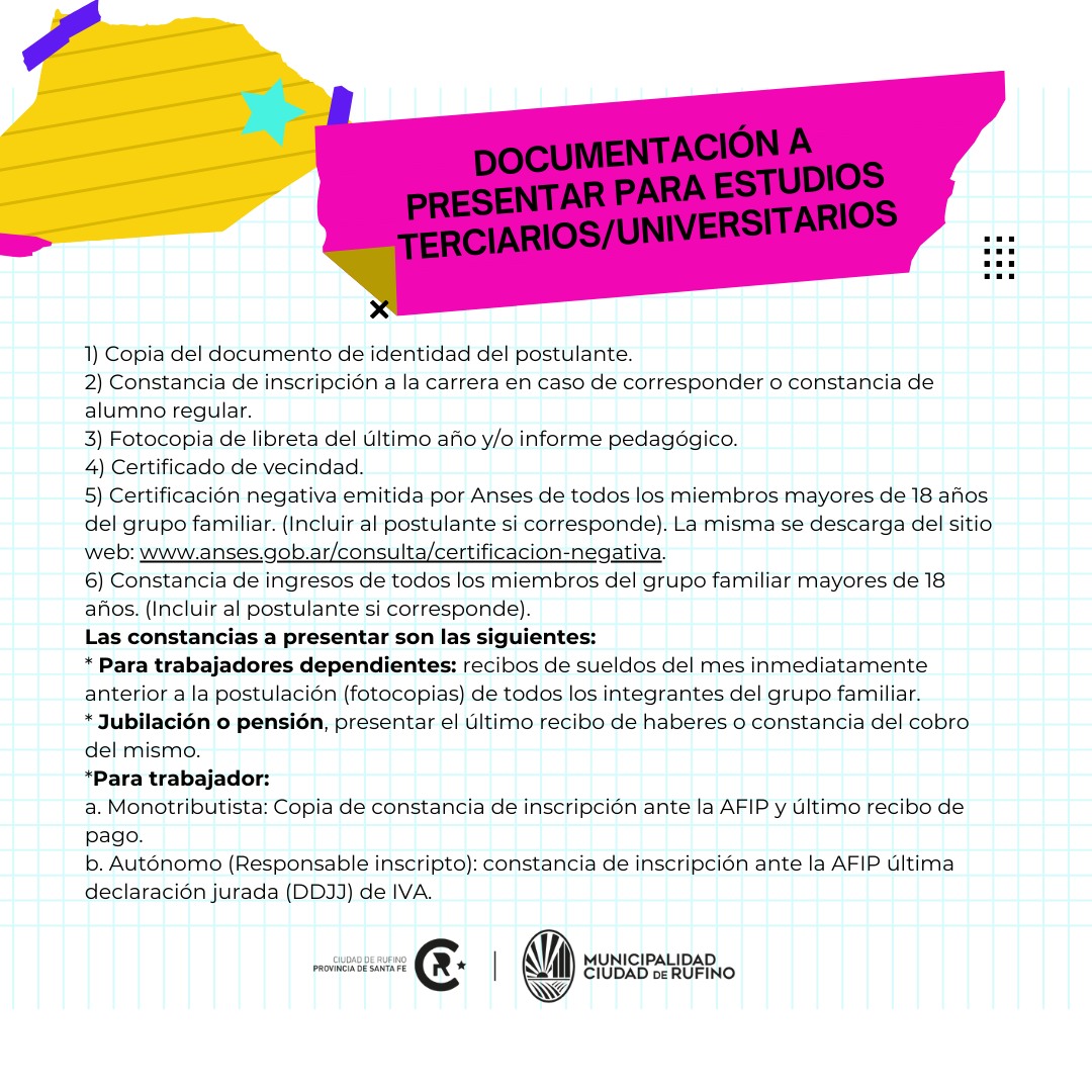 La Municipalidad de Rufino informó que se abren las inscripciones para las becas destinadas a estudiantes de niveles secundario, terciario y universitario de instituciones públicas y privadas hasta el 10 de enero inclusive.