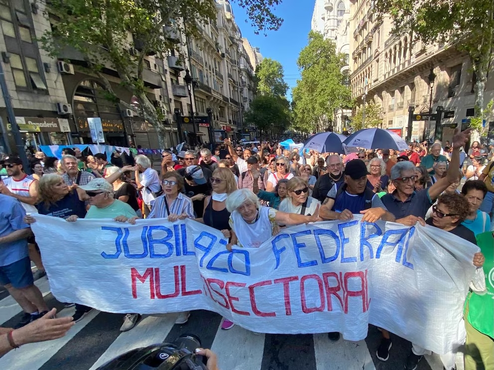 Allà permanecen la agrupación Jubilazo Federal Multisectorial, que agrupa a personas del sector pasivo. Hubo numerosas consignas expresando solidaridad con el fotógrafo Pablo Grillo, herido gravemente el miércoles pasado por un disparo realizado por la GendarmerÃa Nacional.